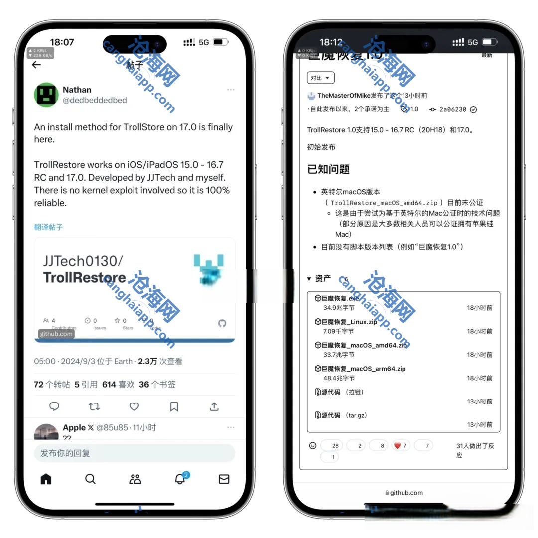 iOS 17.0 TrollStore 安装工具 TrollRestore,终于发布了!TrollRestore 是一款电脑端工具,由 JJTech和Nathan 开发。必须使用电脑才可以安装。macOS 需要 macOS 12 (Monterey)或更高版本。Windows 需要Windows 10 或更高版本。下面来详细说说安装方法。