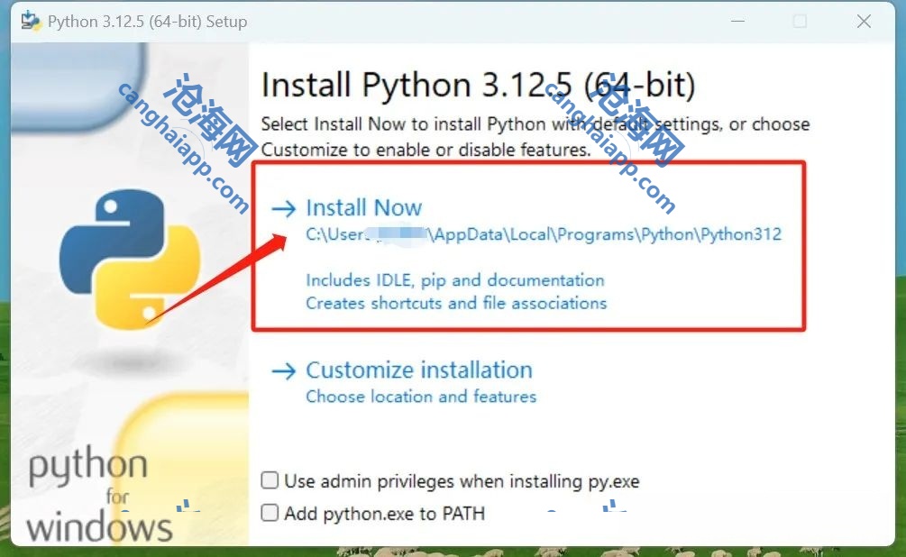 下载好 python-3.12.5 打开它,点击 Install Now 安装