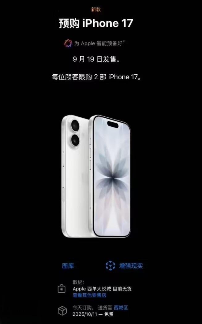 苹果 iPhone 17 和 iPhone 17 Pro 系列今晚 8 点开启预售,首发即售罄。