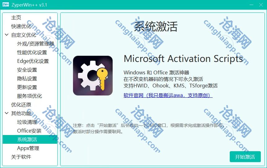 以往也给大家分享过Optimizer和老毛子的BoosterX。这次再来一款轻便的Windows优化工具,它仅有2MB,更难得的是自带系统激活和office安装——ZyperWin++