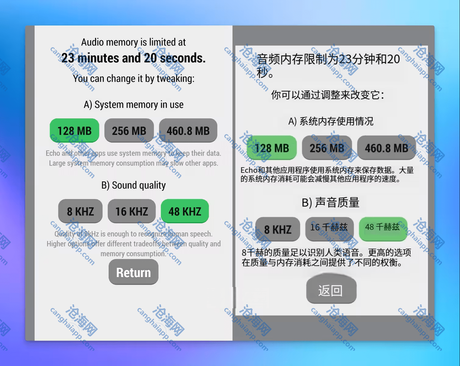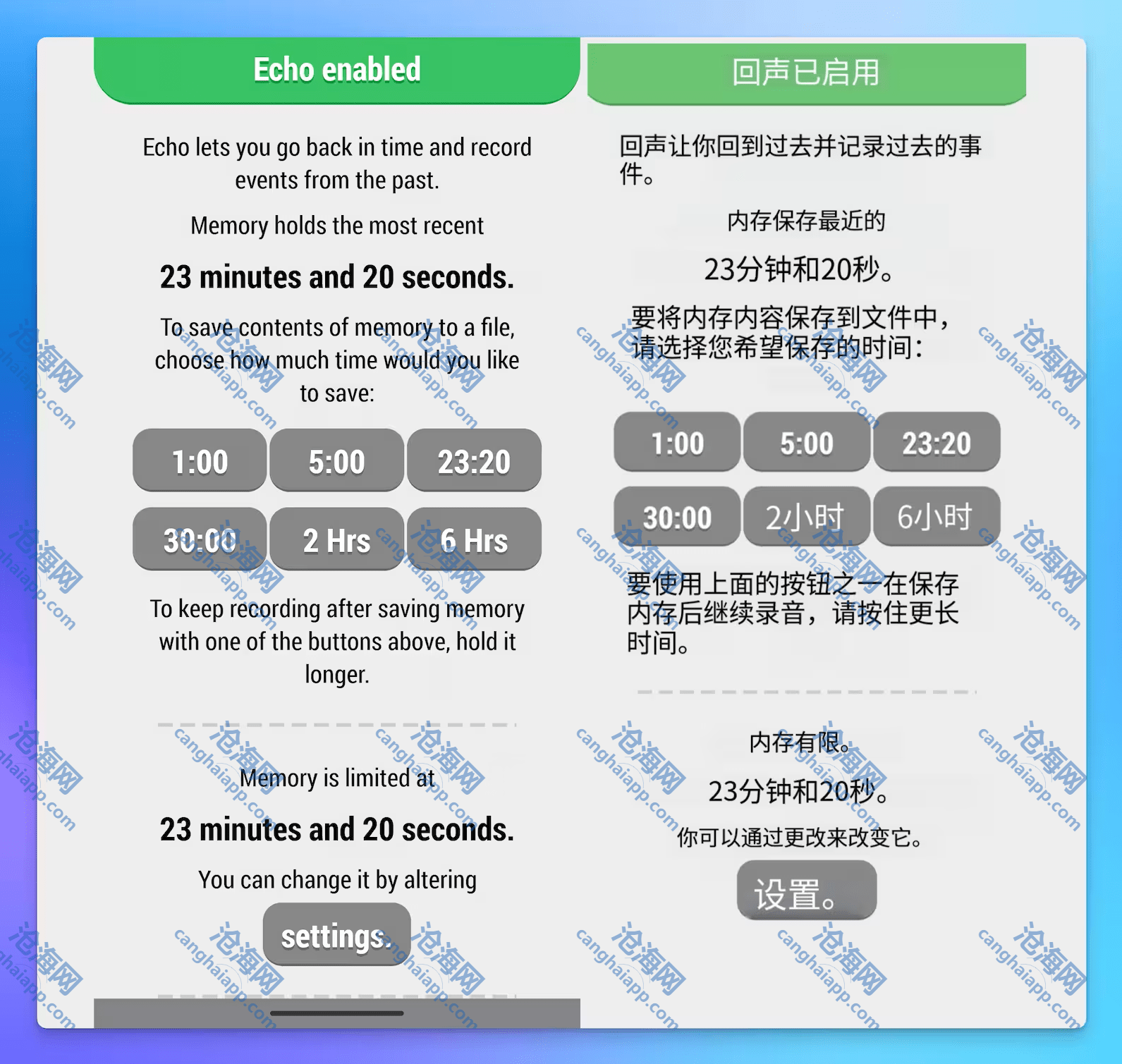 Echo 回声是一款开源的安卓应用,它可以让你的手机在后台 24 小时自动循环录音。并随时保存指定时间内的录音内容。