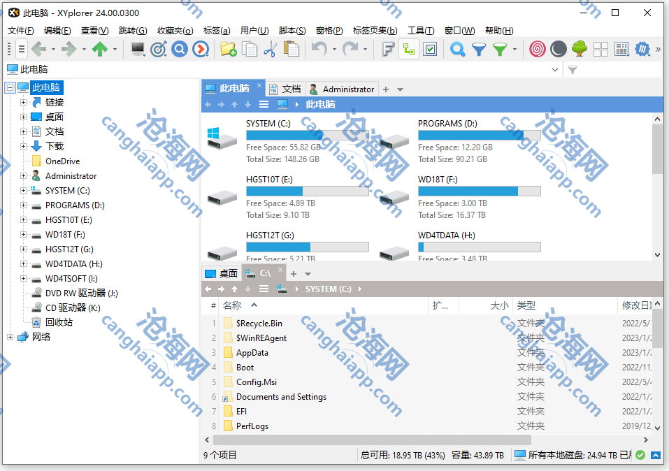 通过 XYplorer 的双面板、多标签页模式可以高效地浏览文件或者目录,同时每个面板窗口均能够开启多个文件夹标签页,更方便的帮助你完成资源的浏览、查看、复制、删除等操作。