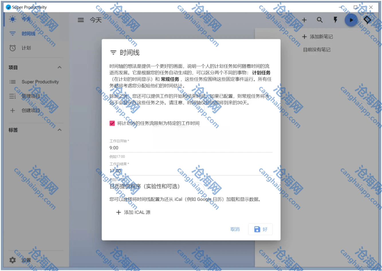 Super Productivity是一款任务管理软件,也是一个开源码的应用程序,利用这个软件可以去管理一天日常的工作计划,对自己一天的工作内容进行有效的管理,清楚的知道自己一天内都做了些什么。Super Productivity设置简单,包括许多的功能,有自己的特点。