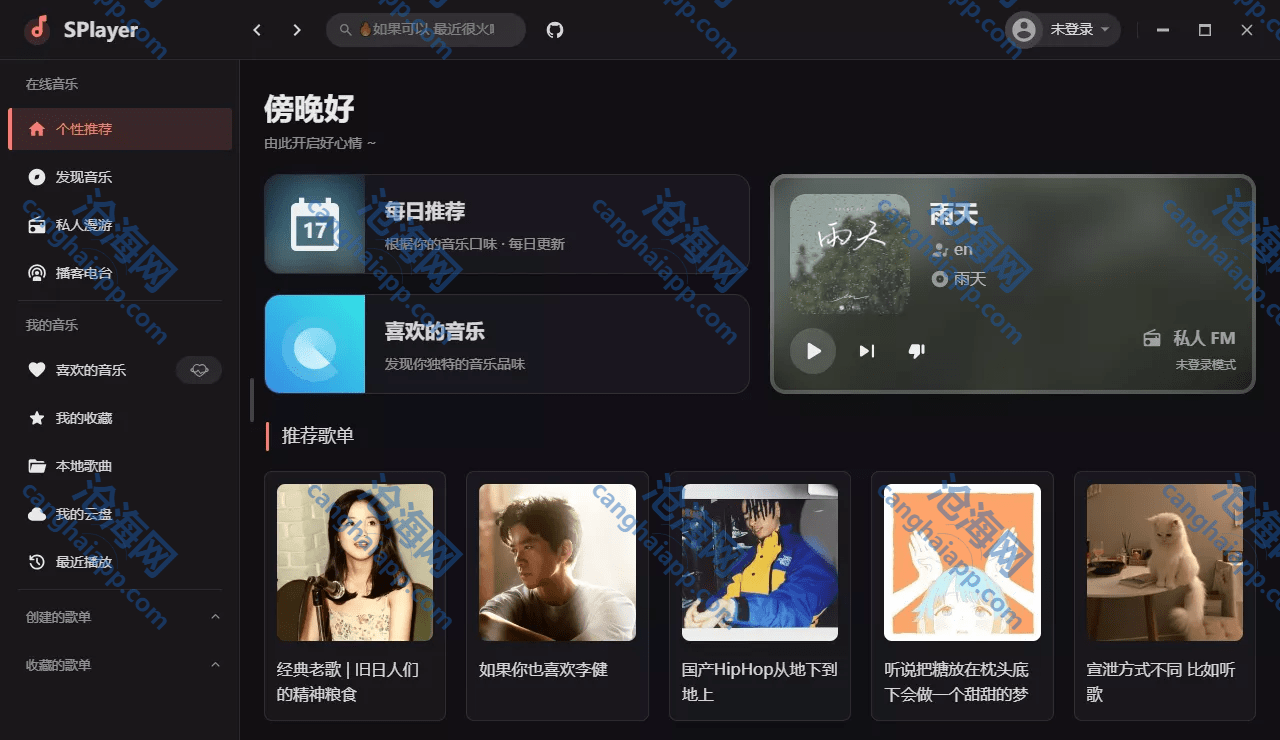 此外,SPlayer还提供了音乐云盘及歌单管理功能。你可以将心爱的歌曲上传到云盘,随时随地享受音乐的陪伴。同时,强大的歌单管理功能让你轻松整理自己的音乐库,无论是按歌手、风格还是心情分类,都随你心意。