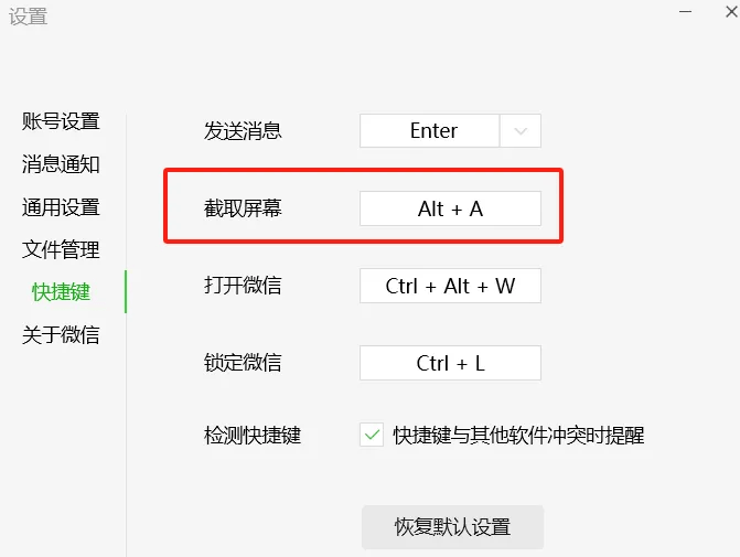 2.微信截图:Alt+A 任意截取