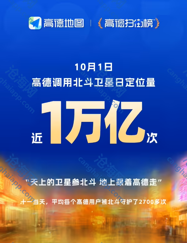 10 月 2 日消息,据新华社今日报道,10 月 1 日,高德基于北斗卫星导航系统的定位数量接近 1 万亿次,创民用导航服务新纪录,支撑导航总里程数超 90 亿公里,相当于在地球与月球之间往返 11000 多次的距离;峰值期间,每分钟有超过 1300 万用户,通过高德获取实时导航服务。