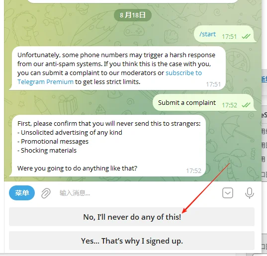 ?第一步:点击 :@SpamBot (核实所有字母和认证标识,很多盗号的会模仿用户名或者用超链接假账号)