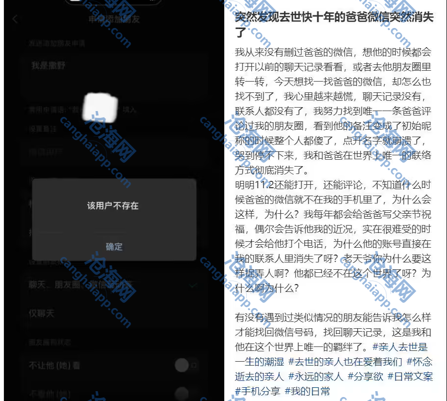 IT之家注意到,今年 2 月,“网友爸爸去世多年微信账号突然消失”登上微博热搜,有网友发帖称,其爸爸去世近十年,想爸爸的时候会打开以前的聊天记录或者去看看爸爸的朋友圈,最近却找不到爸爸的微信了。