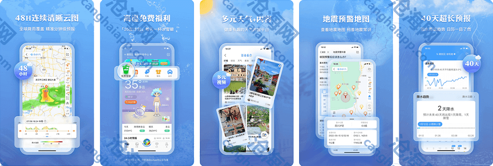 【多维度天气预报】在2小时短时基础上新增48小时精准雨雪预报,精确到分钟级,新增温度、风力、气压可视化地图,天气变化一目了然。