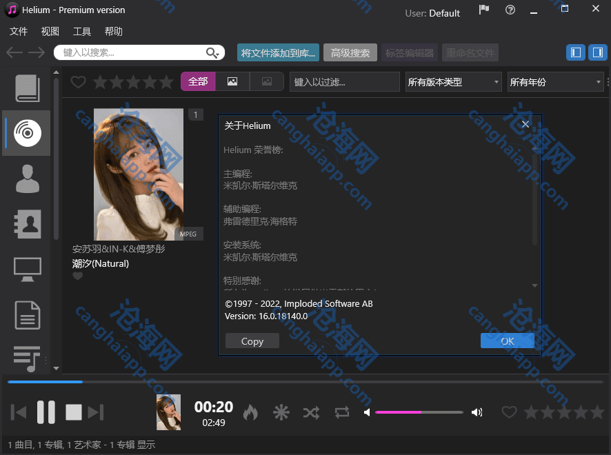 Helium Music Manager 是一个音乐管理器,可以翻录、标记、播放、浏览、搜索、重命名、刻录和与便携式播放器同步您的音乐。您可以控制您的音乐收藏。不要再花时间在计算机上寻找文件或搜索 CD、黑胶唱片和磁带——相反,只需享受和探索您的音乐!它可以替代您的开膛手、播放器、标签编辑器和其他音频相关软件。这是一个音乐标记器、重命名器、编目器、浏览器、播放列表管理器和报告创建器。它可以编目、编辑和播放最常见的音乐格式(MP3、Ogg、WMA、iTunes M4A、FLAC、APE 和 MPC)以及标准音频 CD。使用新的内置音乐信息浏览器,通过 Web 风格的用户界面以直观的方式浏览您的音乐收藏。