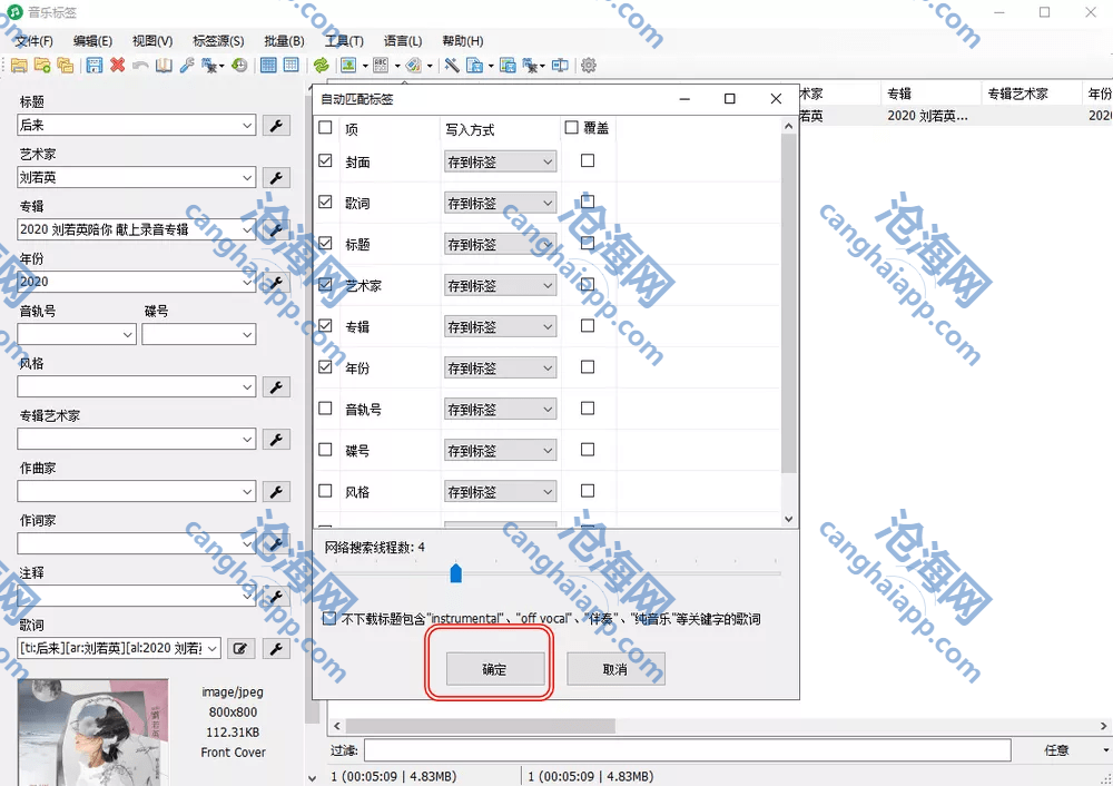 选择后点击确定,软件就会立马对这些音乐文件写入各种音乐信息。