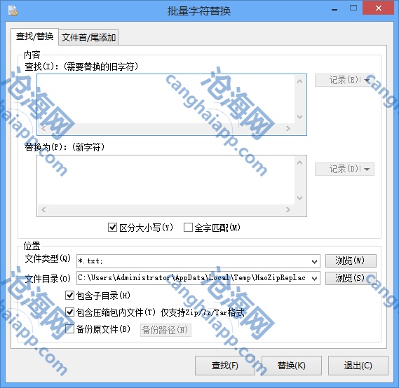 好压批量字符替换是一款功能非常棒而且实用的批量字符替换的工具,可以替换txt文档、网页文件等等。可以超级轻松便捷的对各种类型的文档进行文字替换,支持内容查找、批量替换、字符替换、文件备份、文件首尾字符添加等功能。