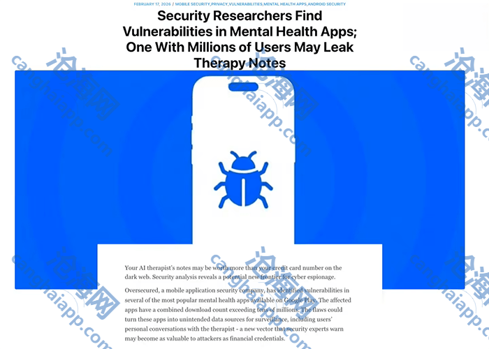 2 月 24 日消息,安全公司 Oversecured 发文,透露业界多款心理健康类 App 存在安全漏洞,这些 App 的累计下载量已达数千万次,其中部分 App 已纳入欧洲公共医疗体系,为数十万患者提供服务,其中一款 App“甚至拥有数百万用户”。